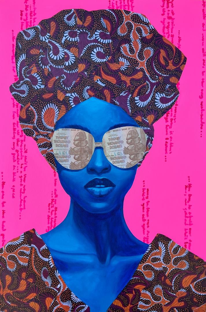 Acrylic and paper collage on canvas